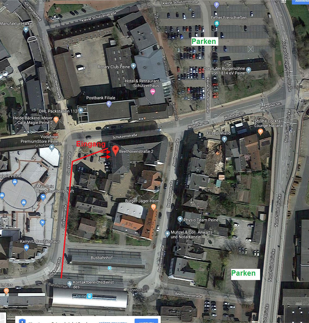 - The entrance is located in Schützenstraße across from ‘City Galerie Peine’.