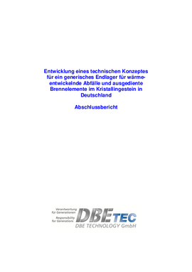 Bertrams, N.; Herold, P.; Herold, M.; Krone, J.; Lommerzheim, A.; Prignitz, S.; Simo, E. (2017): Entwicklung eines technischen Konzeptes für ein generisches Endlager für wärmeentwickelnde Abfälle und ausgediente Brennelemente im Kristallingestein in Deutschland. Final report of the KONEKD R&D project. KONEKD: Development of a technical concept for a generic repository for heat-generating waste and spent fuel elements in crystalline rock in Germany. TEC-20-2017-AB. BGE TECHNOLOGY GmbH (BGE TEC). Peine