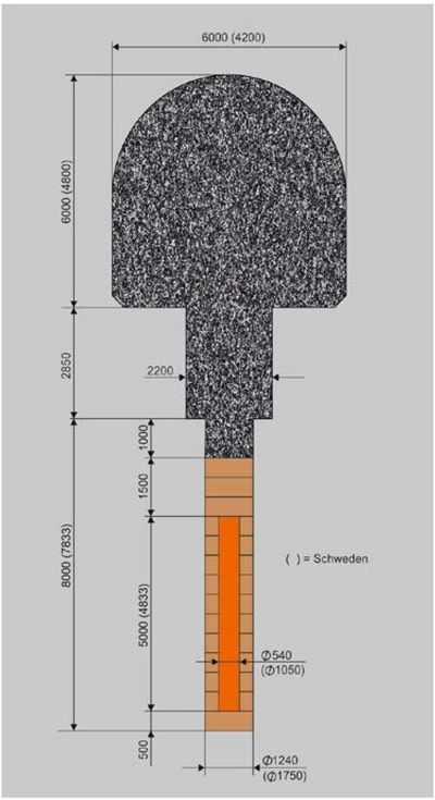Die vergleichende Gegenüberstellung der Untersuchungsergebnisse zeigte, dass für Salz bei 200°C Auslegungstemperatur am wenigsten Fläche benötigt wird und dass bei gleicher Auslegungstemperatur (100°C) sich der Unterschied im Gesamtflächenbedarf für die drei anderen Endlagervarianten im Wesentlichen aus dem Einfluss der unterschiedlichen Wärmeleitfähigkeit des Wirtsgesteins und des gewählten Versatzmaterials ergibt. Die berechneten Endlagerflächen können als Planungsgrößen im Rahmen des Standortauswahlverfahrens wie folgt verwendet werden: