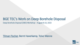 Fischer, T.; Haverkamp, B.; Wanne, T. (2023): BGE TEC’s Work on Deep Borehole Disposal. Vortrag im Rahmen des »Deep Borehole Disposal (DBD) Workshop« vom 8. bis 10. August 2023 im Albuquerque, Vereinte Staaten von Amerika.
