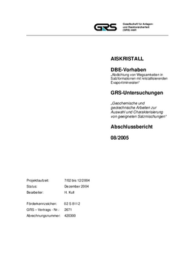 Kull, H. (2004): GRS-Untersuchungen. Geochemische und geotechnische Arbeiten zur Auswahl und Charakterisierung von geeigneten Salzmischungen.. Abschlussbericht. AISKRISTALL: Abdichtung von Wegsamkeiten in Salzformationen mit kristallisierenden Evaporitmineralien. Gesellschaft für Anlagen- und Reaktorsicherheit gGmbH (GRS), DBE TECHNOLOGY GmbH (DBE TEC). Braunschweig