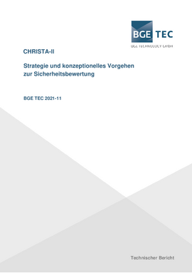 Jobmann, M.; Burlaka, V.; Flügge, J.; Frenzel, B.; Lommerzheim, A.; Maßmann, J.; Mrugalla, S.; Müller, C.; Noseck, U.; Rübel, A.; Simo, E.; Sönnke, J.; Thiedau, J.; Weitkamp, A.; Wolf, J. (2021): Strategie und konzeptionelles Vorgehen zur Sicherheitsbewertung. Entwicklung eines Sicherheits- und Nachweiskonzeptes für ein Endlager für wärmeentwickelnde radioaktive Abfälle im Kristallingestein in Deutschland. CHRISTA-II: Entwicklung eines Sicherheits- und Nachweiskonzeptes für ein Endlager für wärmeentwickelnde radioaktive Abfälle im Kristallingestein in Deutschland. BGE TEC 2021-11. BGE TECHNOLOGY GmbH (BGE TEC). Peine