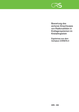 Wolf, J.; et al. (2021): Bewertung des sicheren Einschlusses von Radionukliden in Endlagersystemen im Kristallingestein. Ergebnisse aus dem Vorhaben CHRISTA-II. CHRISTA-II: Entwicklung eines Sicherheits- und Nachweiskonzeptes für ein Endlager für wärmeentwickelnde radioaktive Abfälle im Kristallingestein in Deutschland. GRS - 658. Gesellschaft für Anlagen- und Reaktorsicherheit gGmbH (GRS). Braunschweig