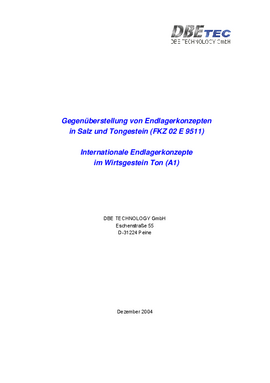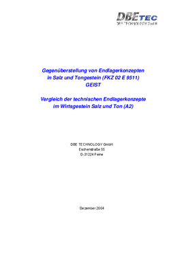 Filbert, W.; Amelung, P.; Biurrun, E.; Bollingerfehr, W.; Müller-Hoeppe, N.; et al. (2004): Gegenüberstellung von Endlagerkonzepten in Salz und Tongestein. Final main report. GEIST: Gegenüberstellung von Endlagerkonzepten in Salz und Tongestein. DBE TECHNOLOGY GmbH (DBE TEC). Peine