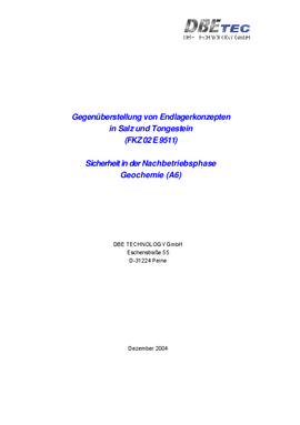 Filbert, W.; Amelung, P.; Engelhardt, H.; Fiebiger, W.; Schellhorn, M.; Bracke, G.; Müller, W.; Fiederling-Kapteinat, H. (2004): Sicherheit in der Nachbetriebsphase Geochemie (A6). GEIST: Gegenüberstellung von Endlagerkonzepten in Salz und Tongestein. FKZ 02 E 9511. DBE TECHNOLOGY GmbH (DBE TEC). Peine